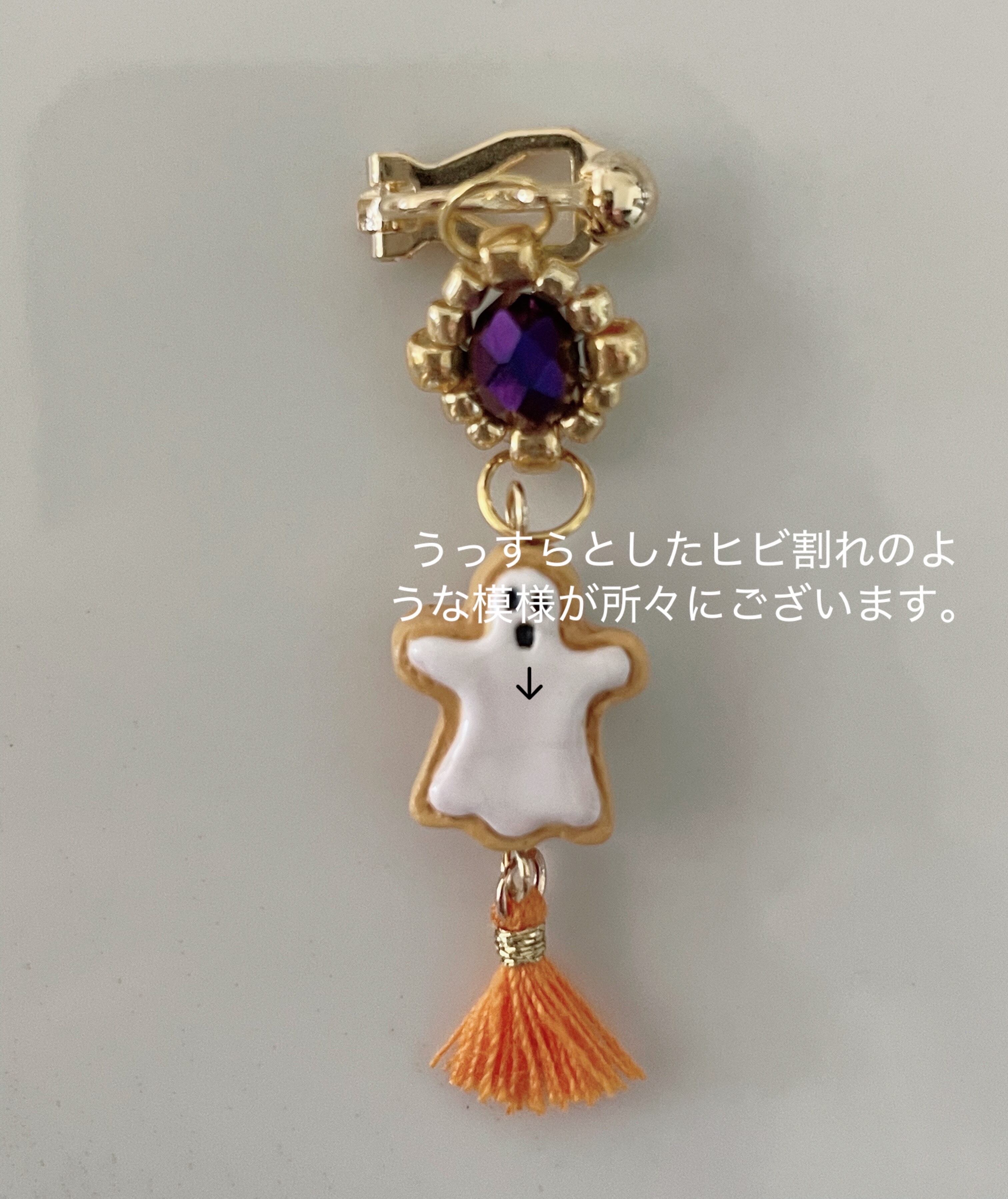ペルー製の可愛いお化けちゃんとハロウィンカラーのタッセルを組み合わせた可愛いイヤリングです。